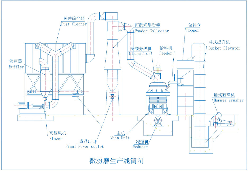大理石磨粉機(jī)全套配置包括錘式破碎機(jī)、斗式提升機(jī)、儲(chǔ)料倉(cāng)、震動(dòng)給料機(jī)、微粉磨主機(jī)、變頻分級(jí)機(jī)、雙聯(lián)旋風(fēng)集粉器、脈沖除塵系統(tǒng)、高壓風(fēng)機(jī)、空氣壓縮機(jī)、電器控制系統(tǒng)。根據(jù)用戶需要也可配備破碎機(jī)、提升機(jī)、儲(chǔ)料倉(cāng),電磁振動(dòng)給料機(jī)及電器控制柜等輔助設(shè)備,用戶根據(jù)需要配備升機(jī)、儲(chǔ)料倉(cāng)、電控柜、電磁給粉機(jī)、破碎機(jī)等相關(guān)磨粉設(shè)備。